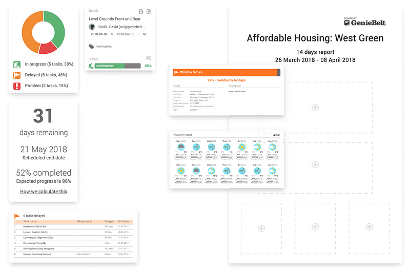 Generating detailed and intuitive reports in a simple and fast manner is vital. With the help of a reliable digital tool, you should be able to create a new PDF report and share it with your team in real time. For instance, by using LetsBuild you can add photos, comments and information about the weather in order to give an in-depth understanding of why things happened and when. Timing is very crucial in construction projects, so ideally you want to use a tool that will allow you to filter information based on specific periods and generate field reports accordingly. Keep track of your project’s progress and ensure that everyone is on the same page.