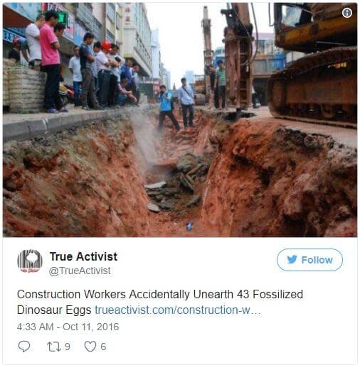 These eggs were found in the Chinese city of Heyuan. The eggs were found by workers during the repairment of a road. 19 of them were completely intact, and the largest of them were 5 inches (13 cm) in diameter.