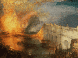 We also have a painting of the buildings in 1834. Unfortunately detail is a bit obscured. The painting is of the two Houses burning down!