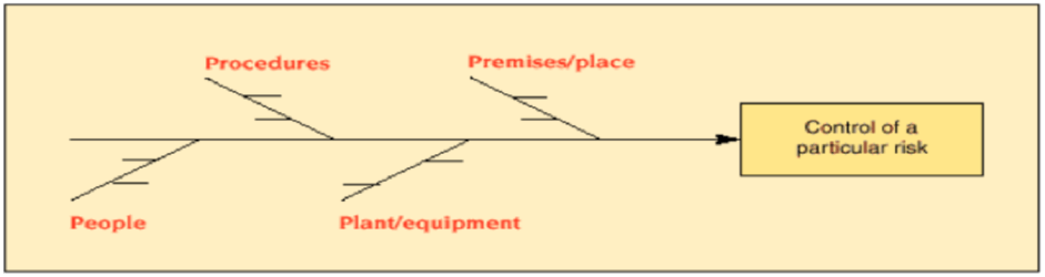 This is basically comparing against a defined standard and considers workplace precautions under the four P’s: premises, plant and materials, procedures, and people, which is illustrated here: