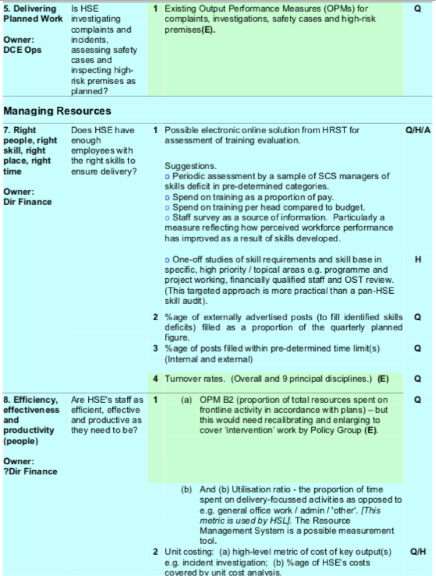 They cannot emphasise enough the need for more proactive or upstream measures of performance. This translates to more concrete things to measure like the number of training courses or inspections.