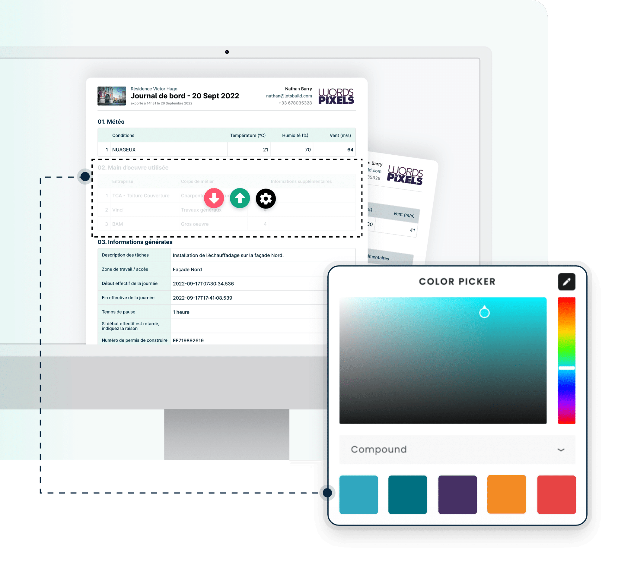 - Ajoutez tout type d’informations personnalisables et utiles dans votre situation, afin de créer des rapports plus proche de la réalité sur chantier