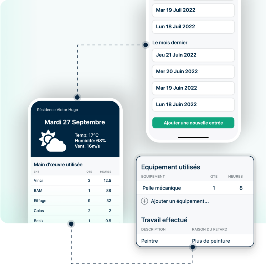 - Enregistrez et conservez les activités quotidiennes du chantier de manière structuré