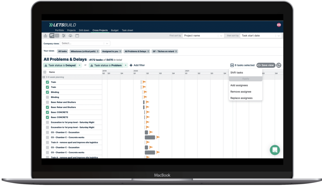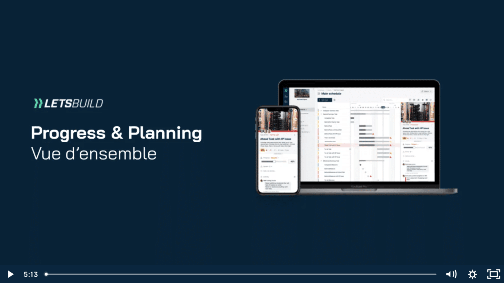 Le module Planning & Progress de LetsBuild vous offre une visibilité complète sur le chantier, vous permettant d’améliorer votre productivité, votre travail d’équipe, votre prise de décision et votre rentabilité. Rassemblez toutes les données clés de votre projet en temps réel dans une seule source de vérité.