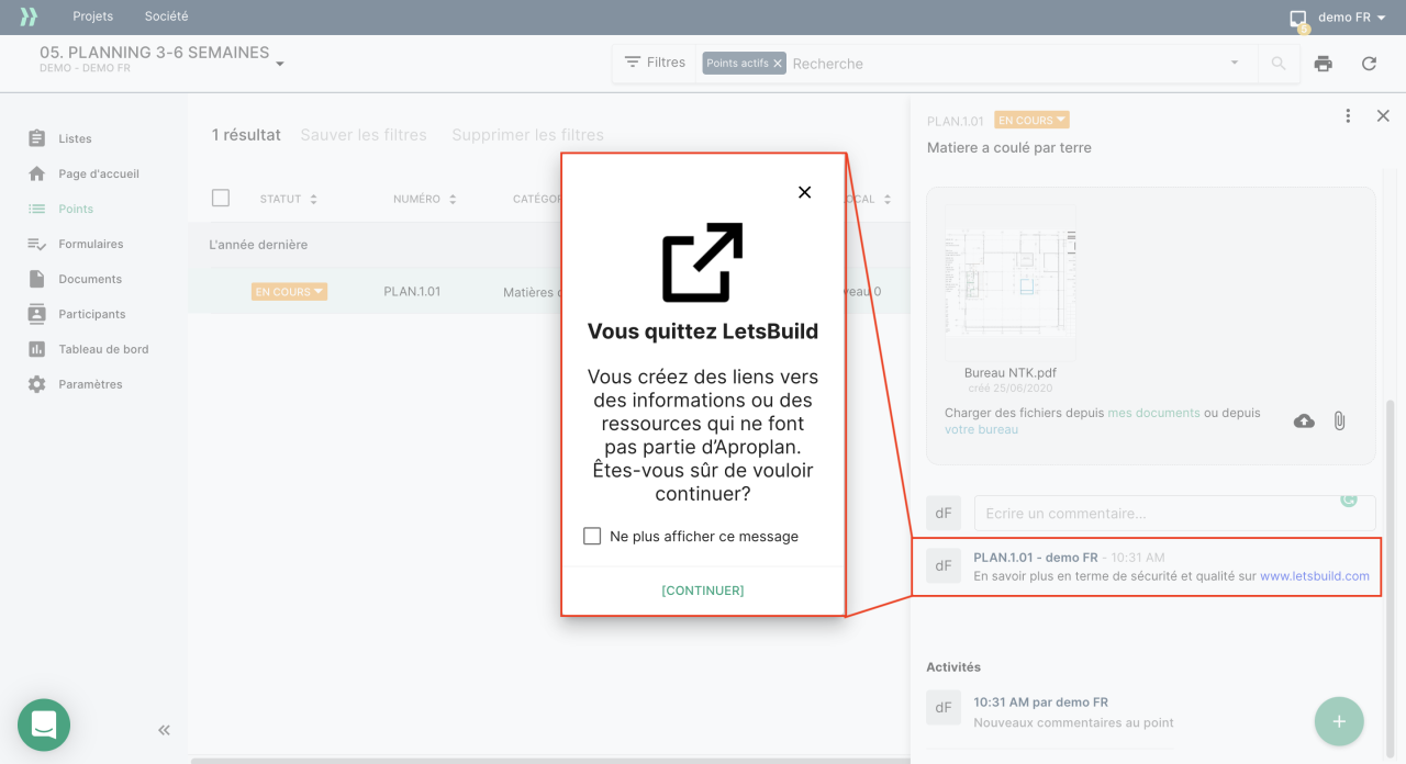 Pour faciliter cette démarche, vous pouvez désormais ouvrir des liens directement dans les commentaires d’un point ou d’un formulaire.
