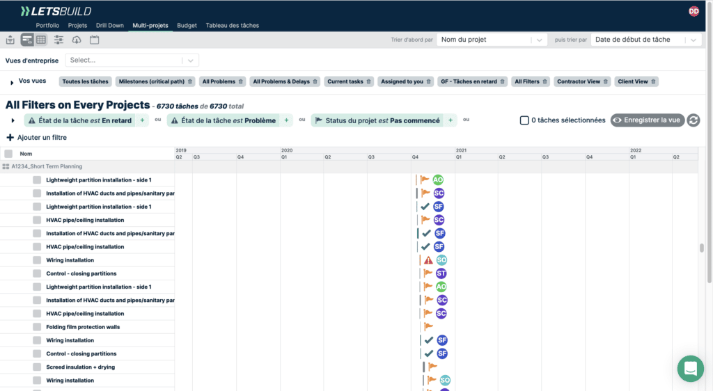 En ajoutant un grand nombre de filtres, en utilisant des vues d’entreprise ou vos propres vues différentes, il devient alors plus difficile de voir ce qui compte : le diagramme de Gantt.