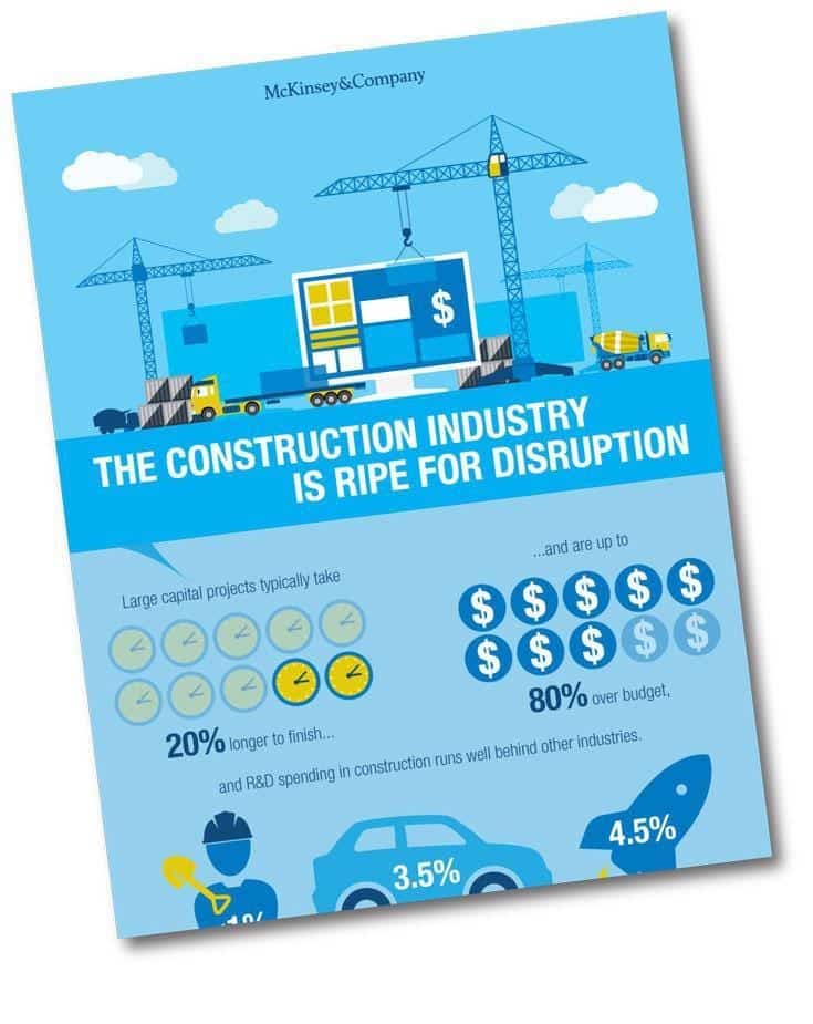 L’achèvement de grands projets prend au moins 20% de temps plus et dépassent le budget de près de 80% (McKinsey, 2016). La lenteur d’adaptation de l’industrie à la nouvelle technologie a régulièrement écorné les rendements financiers pour les entrepreneurs.