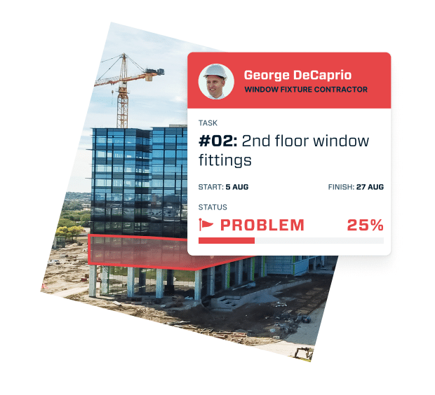 Une fois une tâche terminée, une notification de relance est envoyée aux parties concernées. Lorsque votre menuisier a fini de poser le plancher, par exemple, une notification automatique est envoyée au responsable AQ/CQ pour qu’il commence son travail.