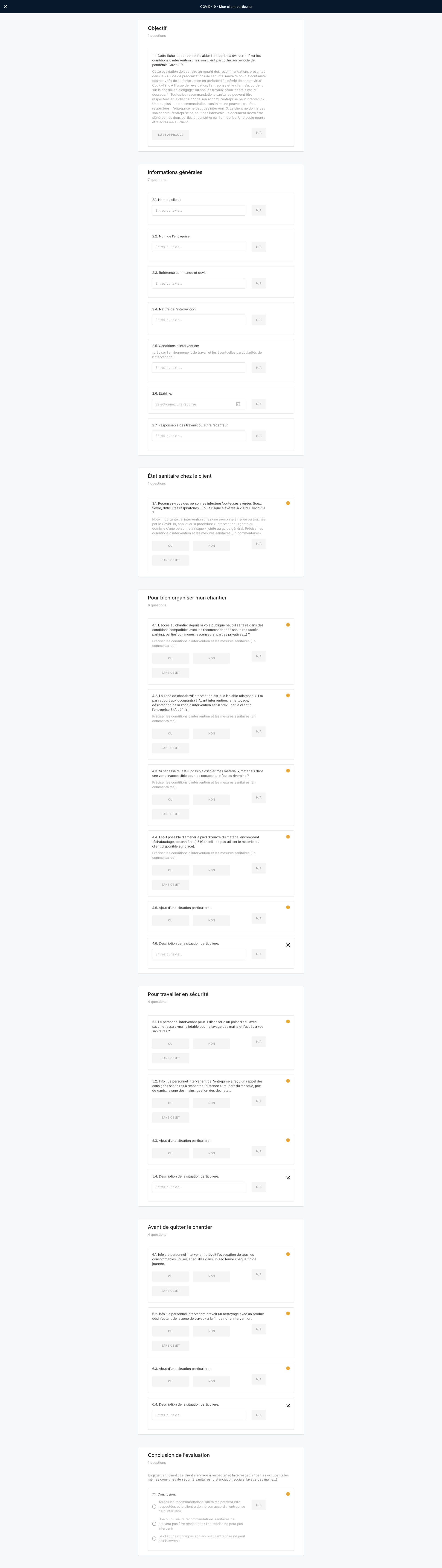 Ce formulaire a pour objectif d’aider l’entreprise à évaluer et fixer les conditions d’intervention chez son client particulier en période de pandémie Covid-19.