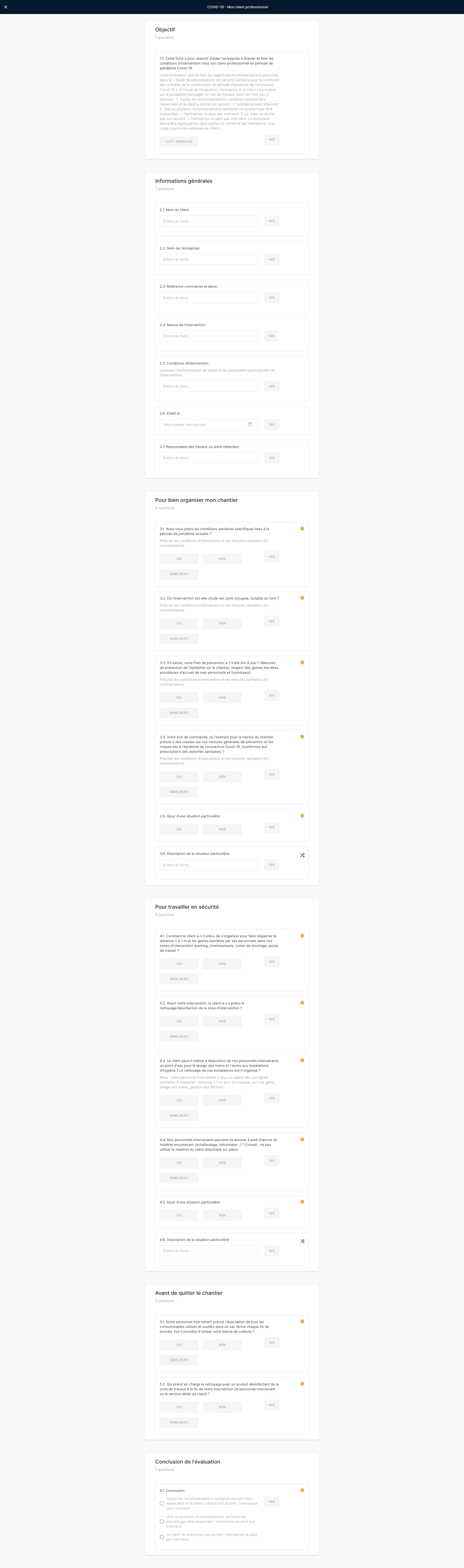 Ce formulaire a pour objectif d’aider l’entreprise à évaluer et fixer les conditions d’intervention chez son client professionnel en période de pandémie Covid-19.