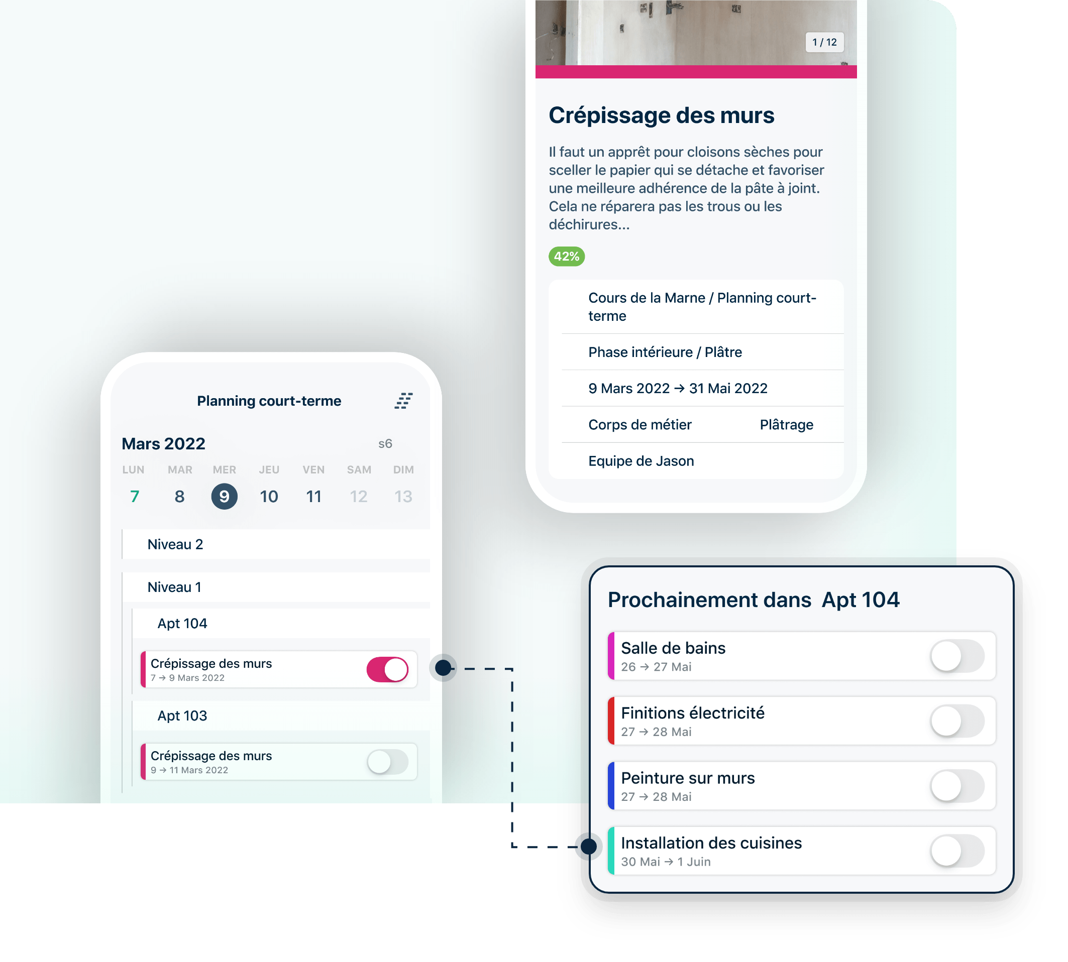 - Restez synchronisé avec l’état réel de votre chantier tout en respectant ses exigences, vos délais et son budget.