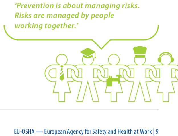 “Preventie is de hoeksteen van de Europese aanpak wanneer het neerkomt op veiligheid en gezondheid. In praktijk betekent dit het analyseren van werkprocessen om risico’s op korte en lange termijn te identificeren, alsook actie ondernemen om deze te voorkomen of minimaliseren.”