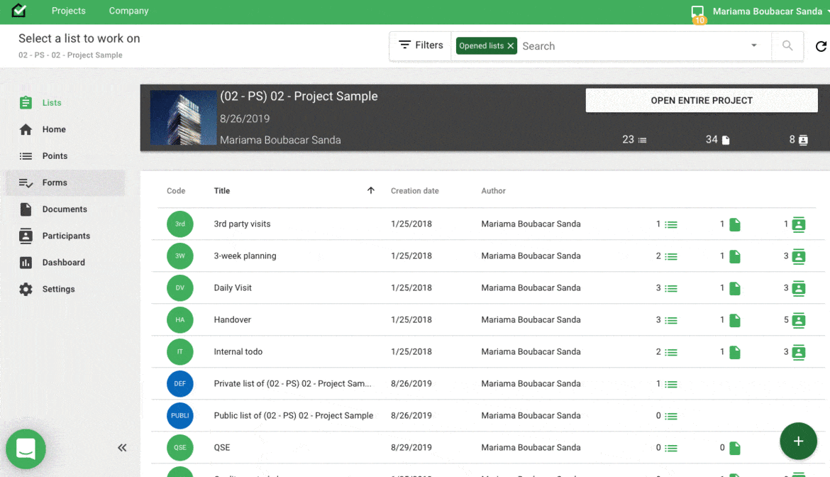 U kan nu alle verschillende elementen zien van al uw projecten binnen uw bedrijf. Volg verschillende aspecten van uw projecten zoals het aantal openstaande projecten, het aantal aangemaakte Punten in een project en het aantal gebruiker logins. U kan ook uw data filteren per gebruiker om individuele gebruikersactiviteiten te volgen.