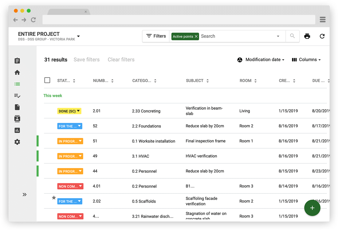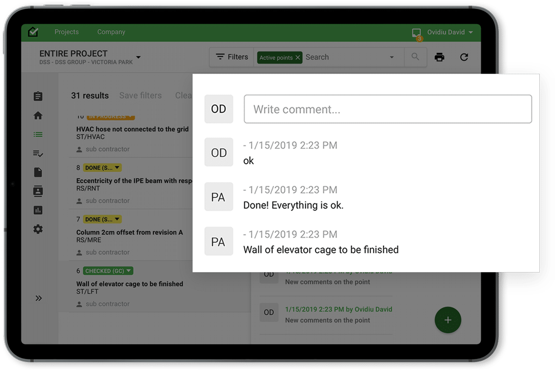 - Documenteer snagging inspecties, acties en communicaties