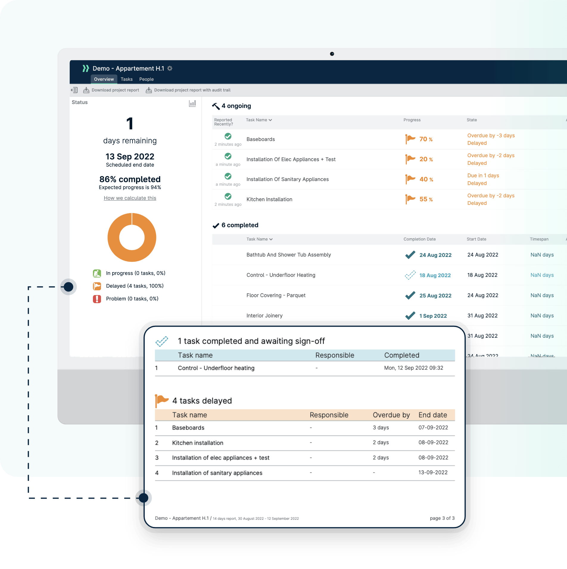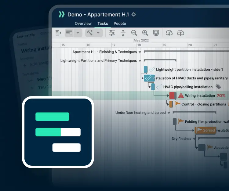 - Stuur het hele proces als één geheel aan en trigger voor show-stoppers op de bouwplaats.