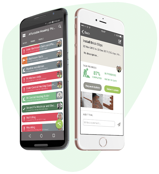 - Comment une seule application permet aux équipes sur site de partager les actualisations concernant l’état d’avancement des travaux et de signaler les problèmes. Ces informations sont directement mises en relation avec votre planification sur 3 à 6 semaines