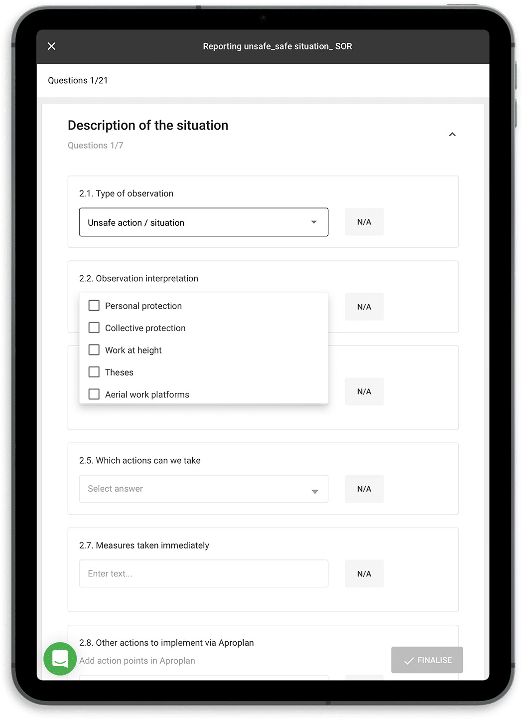 Standardised forms and reporting processes ensure that any observations made on site get recorded properly and communicated to the right people. This is key to preventing incidents in the future. Should an incident occur, it is critically important to record the circumstances surrounding the incident carefully. With LetsBuild, you can even attach photos to your report.