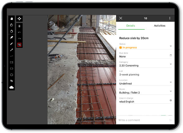 LetsBuild allows you to easily capture defects on site and reporting them in a standardised workflow that ensures a full audit trail and overview of outstanding issues. Add photos, notes or documents to enrich the data. Site inspections can be performed faster and more efficiently, and the relevant people are automatically notified.