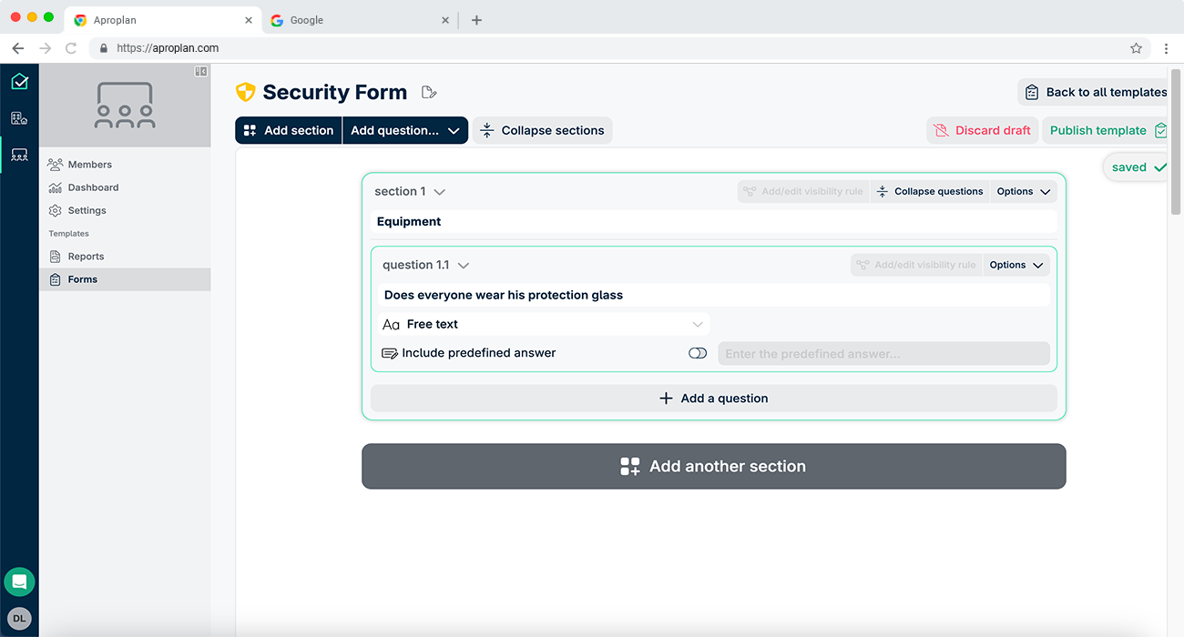 Ensure consistency and compliance by using pre-built templates or designing your own checklists with Aproplan’s Form Editor. Standardising your inspections makes audits easier and reduces the risk of oversight.- Build checklists that reflect your quality and safety standards.